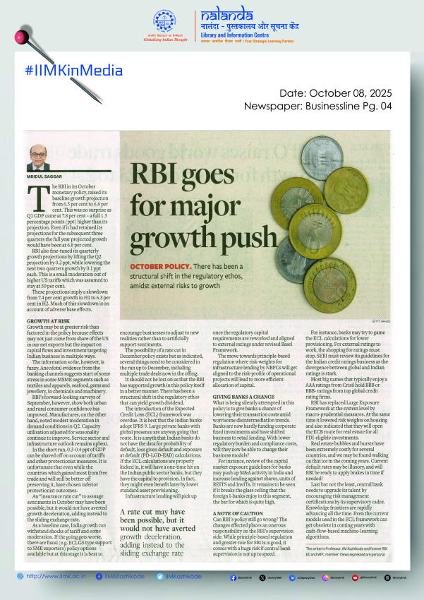 The RBI in its October monetary policy, raised its baseline growth projection from 6.5 per cent to 6.8 per cent. This was no surprise as Q1 GDP came at 7.8 per cent – a full 1.3 percentage points (ppt) higher than its projection. Even if it had retained its projections for the subsequent three quarters the full year projected growth would have been at 6.8 per cent.
