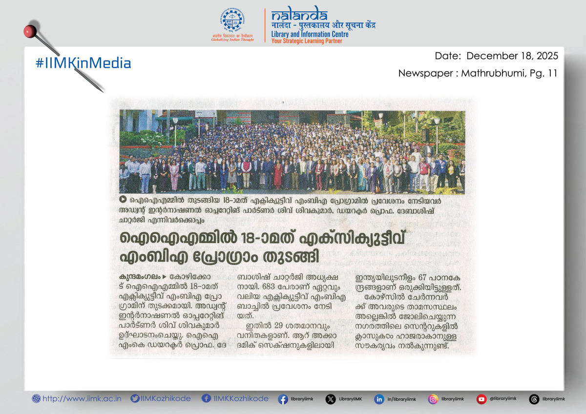 The Indian Institute of Management-Kozhikode (IIMK) has commenced admissions for its two flagship doctoral (PhD) pathways — the 20th batch of the Doctoral Programme in Management (DPM) and the 8th batch of the Doctoral Programme in Management (Practice Track) for 2026-27.