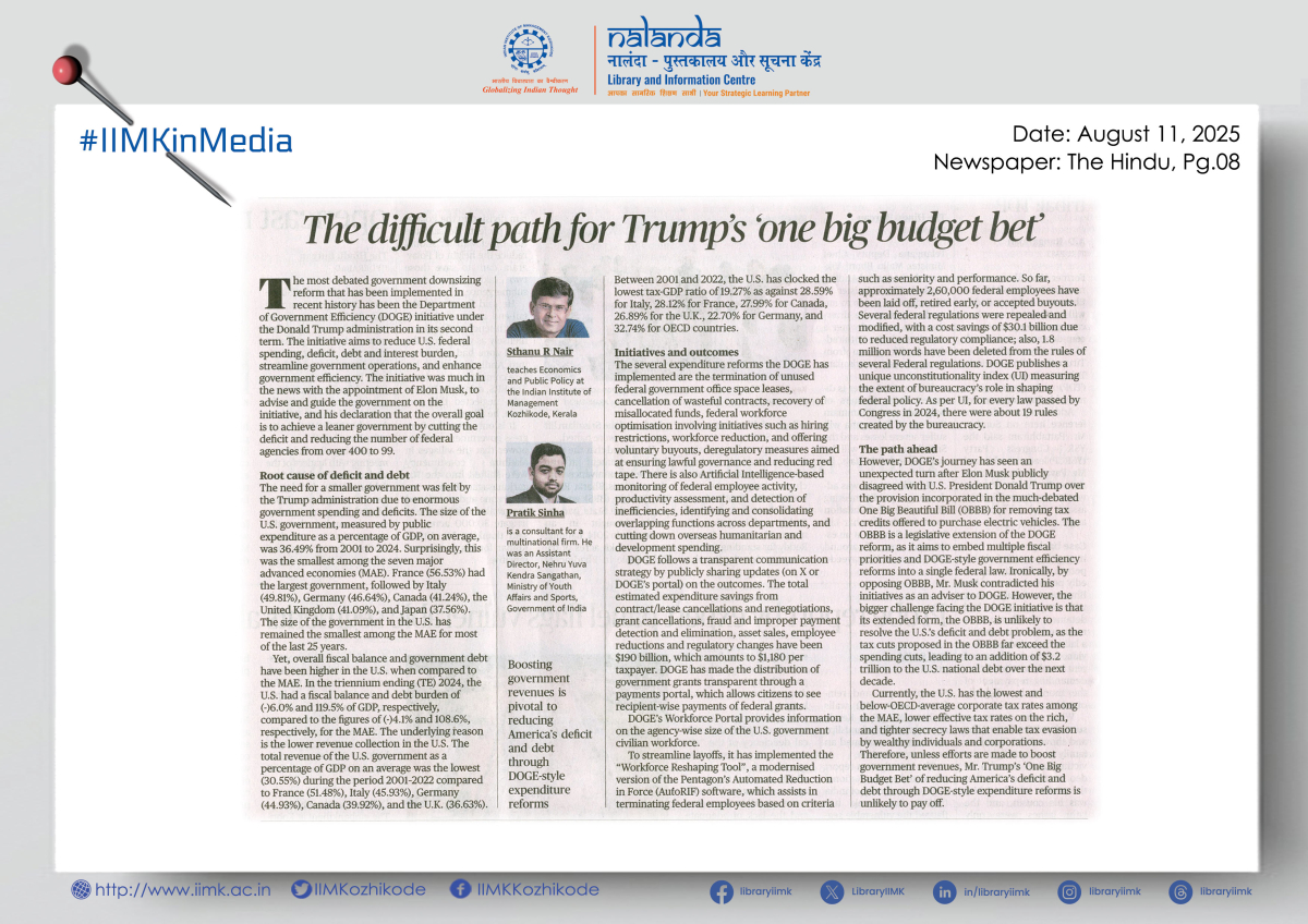 The most debated government downsizing reform that has been implemented in recent history has been the Department of Government Efficiency (DOGE) initiative under the Donald Trump administration in its second term. The initiative aims to reduce U.S. federal spending, deficit, debt and interest burden, streamline government operations, and enhance government efficiency. The initiative was much in the news with the appointment of Elon Musk, to advise and guide the government on the initiative, and his declaration that the overall goal is to achieve a leaner government by cutting the deficit and reducing the number of federal agencies from over 400 to 99.