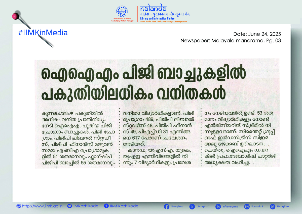 The Indian Institute of Management Kozhikode (IIMK) on Monday (June 23) formally inducted the new cohort for its flagship and specialised MBA programmes for 2025–2027.