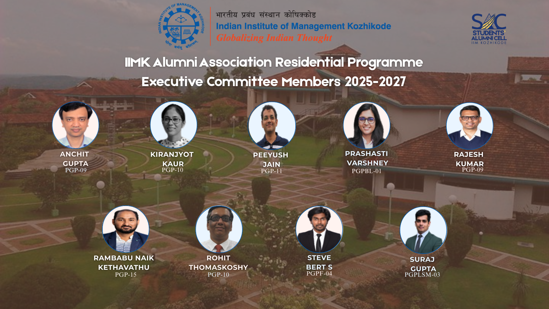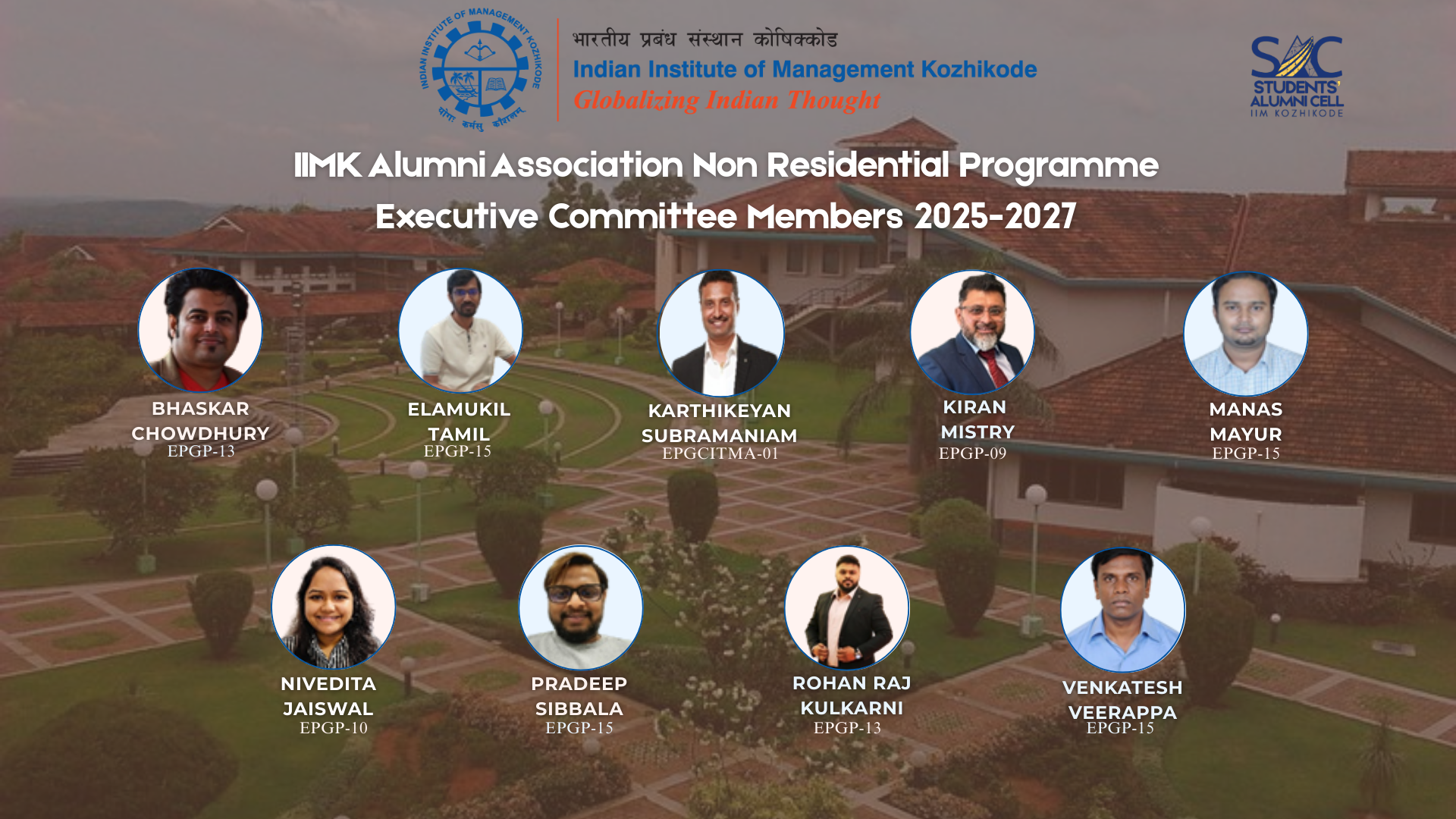 The IIM Kozhikode Alumni network brings together graduates of a variety of programmes right from its inception. The collective strength of this alumni network is the backbone of institute. IIM Kozhikode Alumni Association (IIMKAA) acts as a bridge between the illustrious alumni and their alma mater, giving the current students and the alumni a chance to develop positive synergies and grow together in this process.
