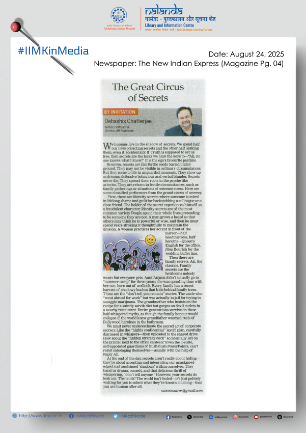 We humans live in the shadow of secrets. We spend half our lives collecting secrets and the other half leaking them, even if accidentally. If Truth is supposed to set us free, then secrets are the locks we have the keys to—“Ah, no one knows what I know!” It is the ego’s favourite pastime.