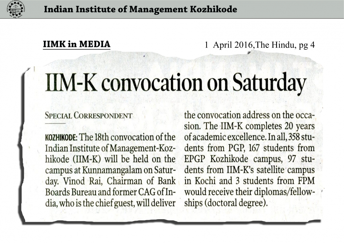 Former CAG Vinod Rai to address IIM-K convocation on Apr 2