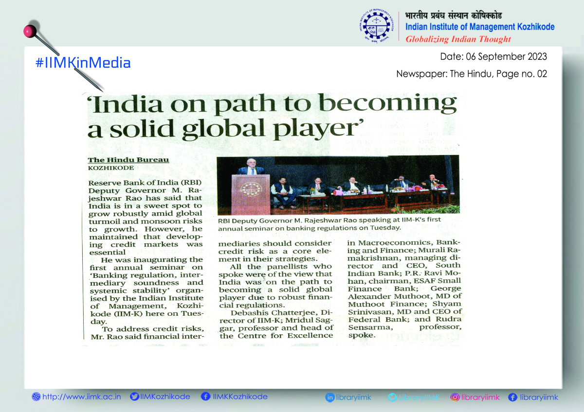 Reserve Bank of India (RBI) Deputy Governor M. Rajeshwar Rao has said that India is in a sweet spot to grow robustly amid global turmoil and monsoon risks to growth. However, he maintained that developing credit markets was essential