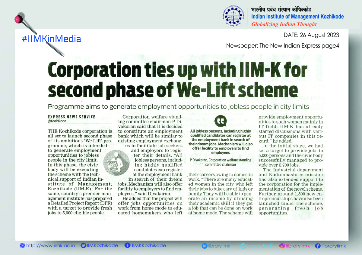 The Kozhikode Corporation is all set to launch second phase of 'We-Lift' Programme, which is intend to generate employment opportunities to jobless people in the city limit.