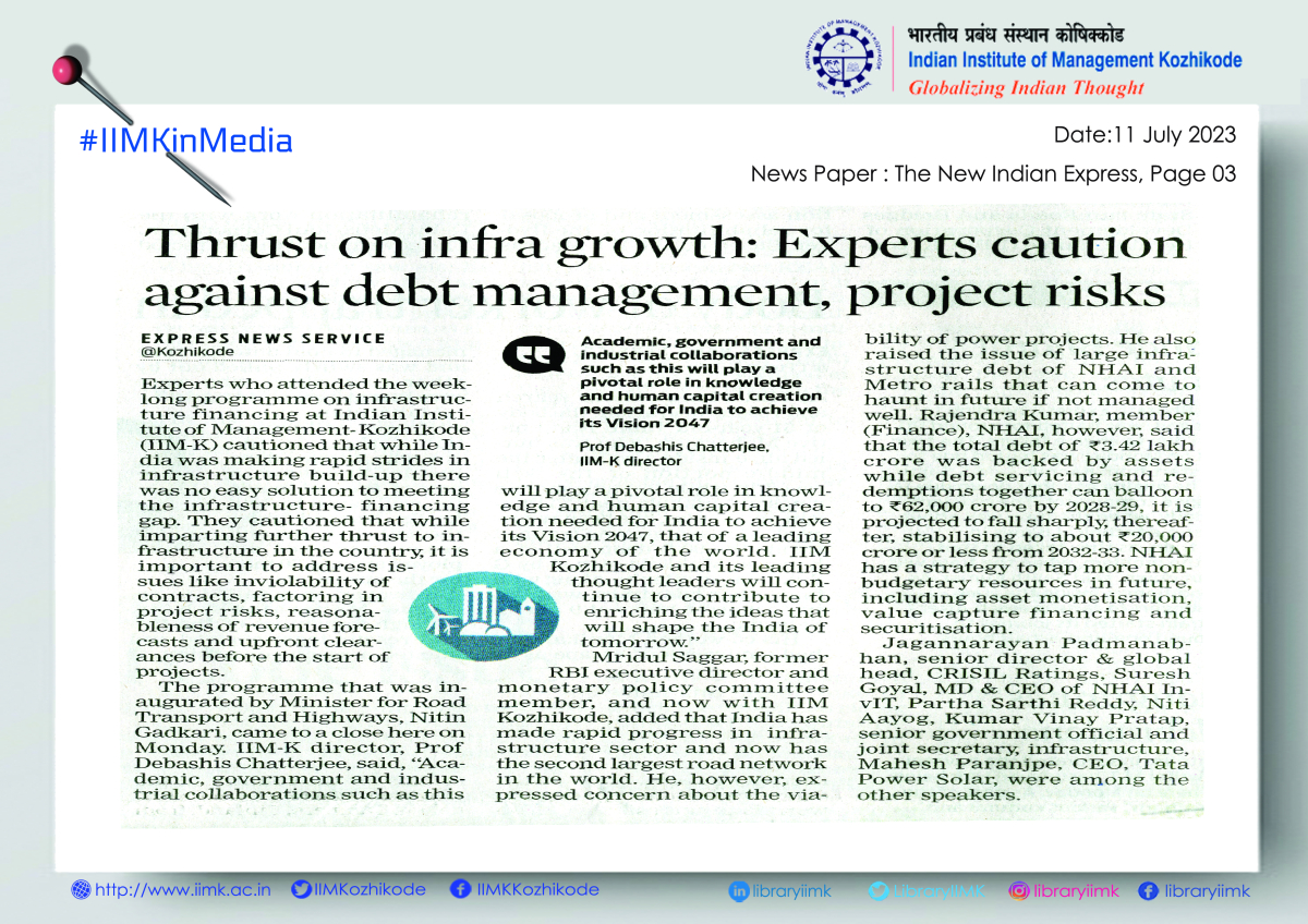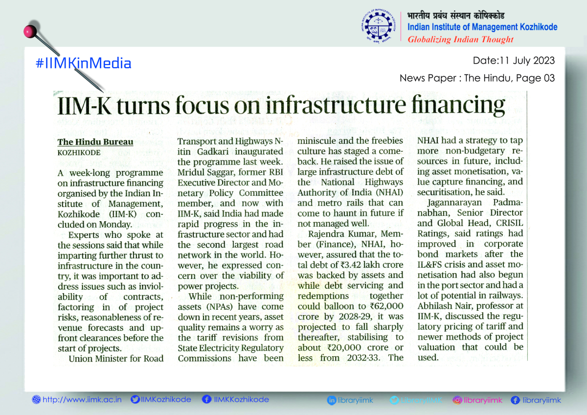 A week-long Programme on infrastructure financing organised by Indian Institute of Management, Kozhikode (IIM-K) concluded on Monday.