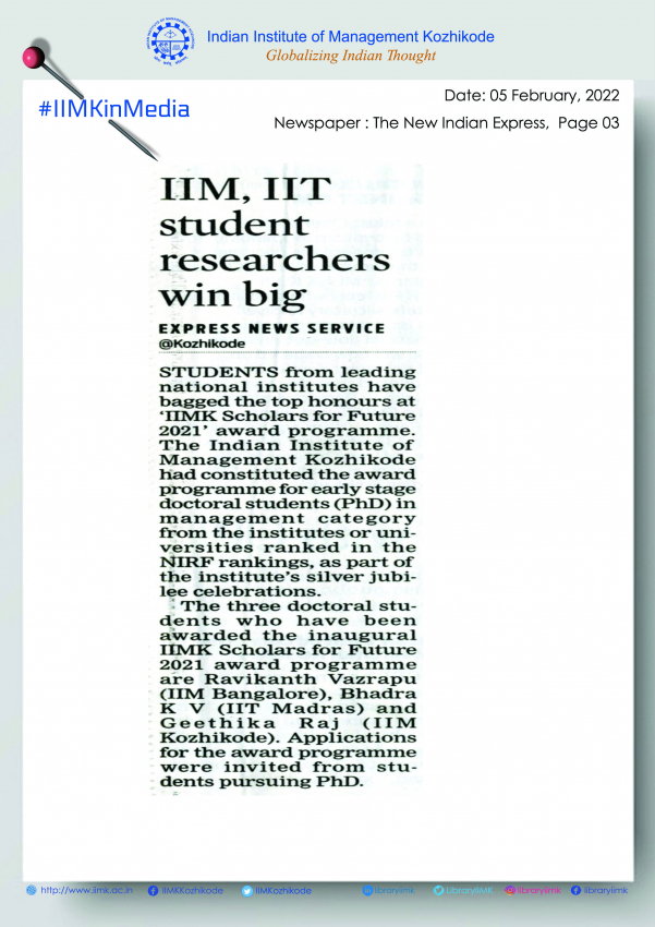 IIM, IIT student researchers win big at 'IIMK Scholars for Future Award 2021.