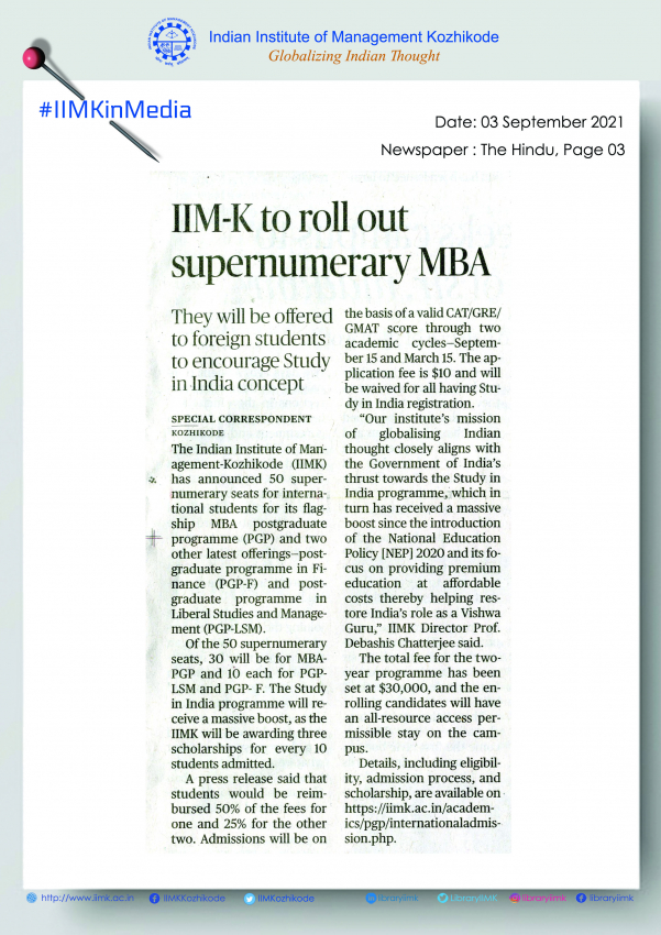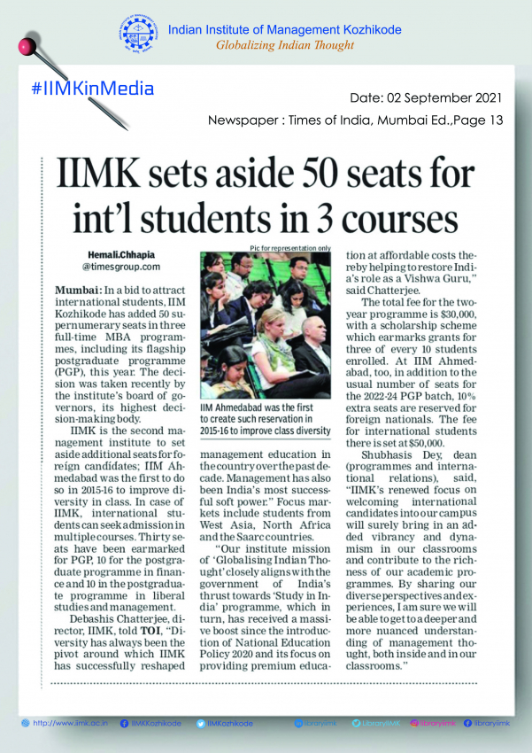 IIM Kozhikode Initiates Supernumerary MBA Seats for International Candidates.