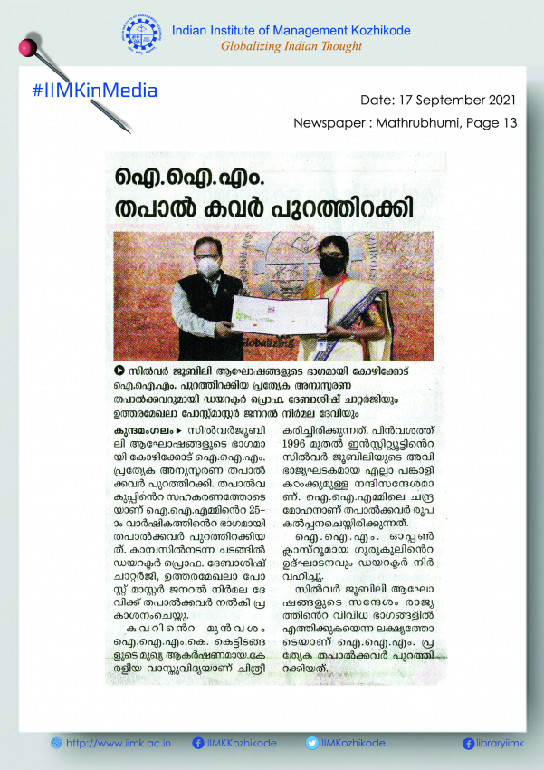 IIM Kozhikode and India Post Come together to Release Special Commemorative Postal Cover to Mark Institute Silver Jubilee; Director IIMK Also Dedicates ‘Gurukul’ Learning Centre and New Website to Institute Stakeholders