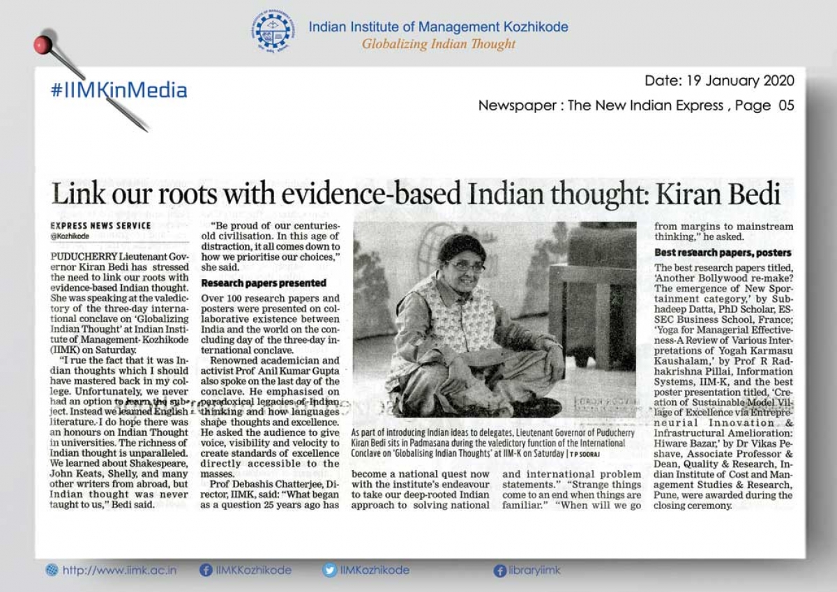 Link our root with evidence-based Indian thought:Kiran Bedi