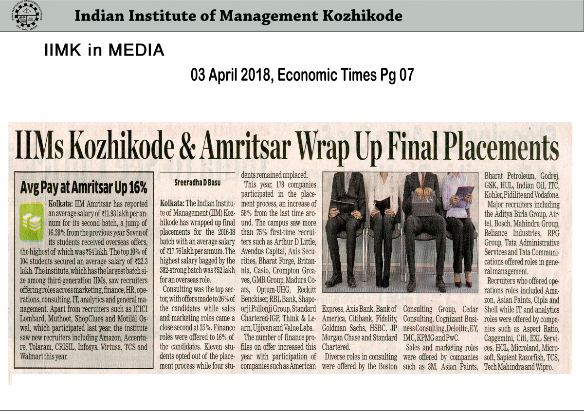 IIMs Kozhikode & Amritsar Wrap Up Final Placements