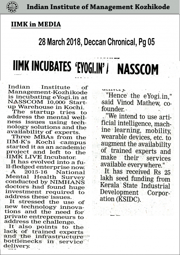IIMK Incubates 'EYOGI.IN at NASSCOM