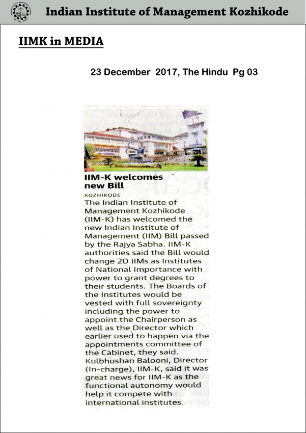 IIM-K Welcomes New Bill