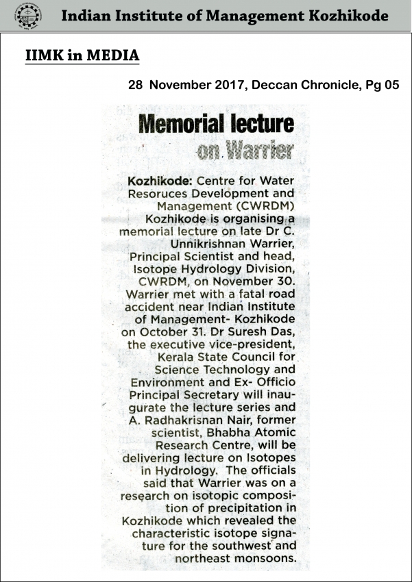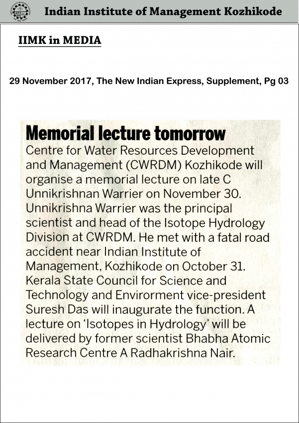 Memorial Lecture on Warrier