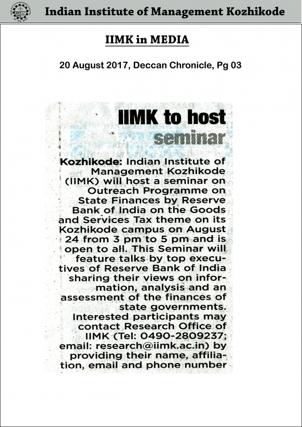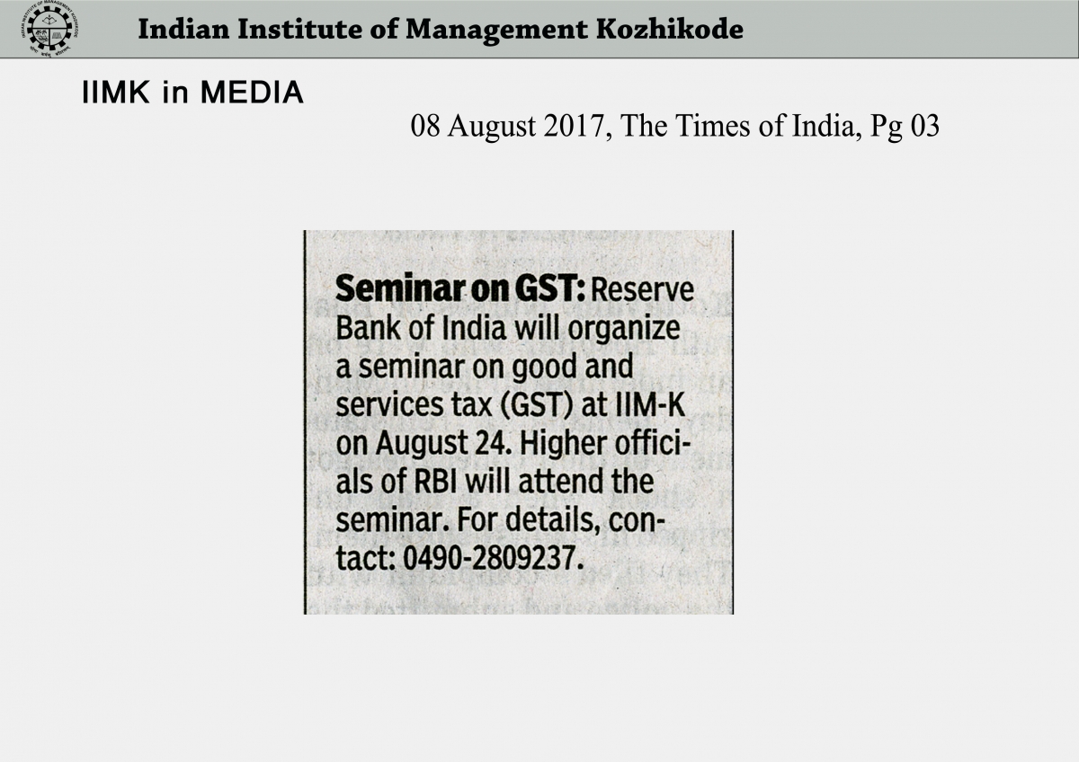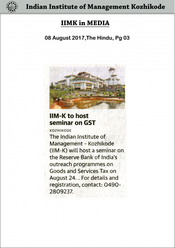 IIM-K to host seminar on GST