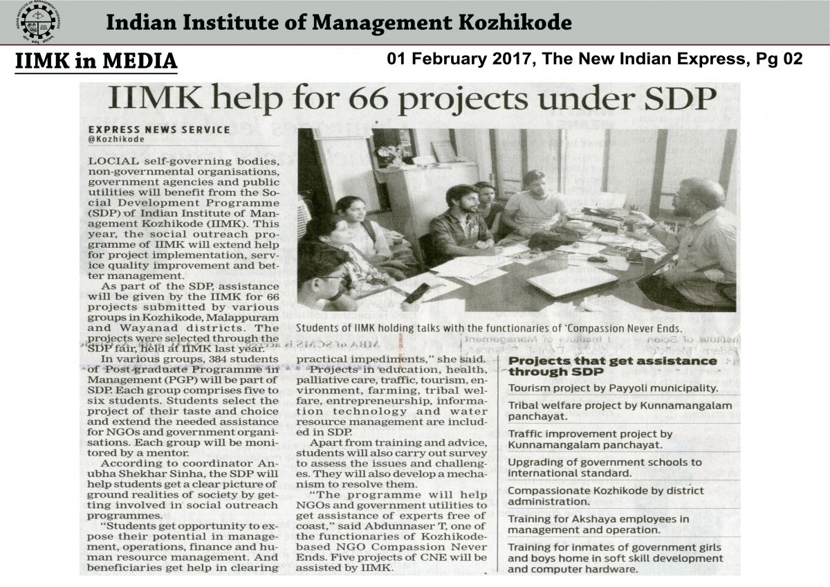 IIMK help for 66 project under SDP